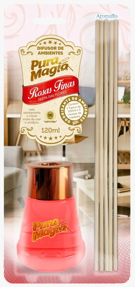 O Difusor de Aromas Pura Magia se difunde no ar através das varetas, proporcionando um perfume agradável no ambiente utilizado, aromatiza de forma contínua e suave. A durabilidade do aroma depende das dimensões de cada ambiente.